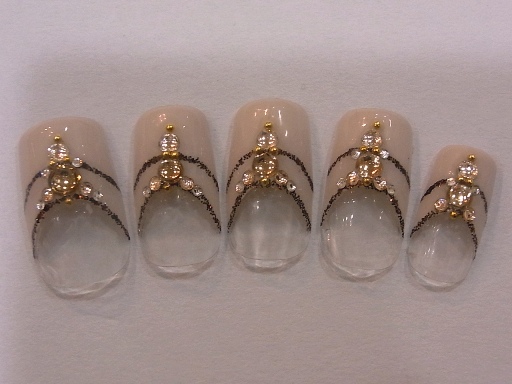 落ち着いたカラーでフレンチを施し、大小のストーンを丁寧にオン。