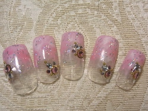 マーブル&ラメ&ストーンの華やかネイルは